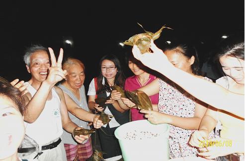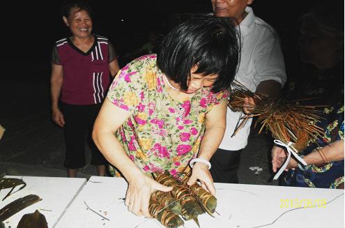 精心設(shè)計(jì)的活動(dòng)吸引了150余名居民參加。活動(dòng)設(shè)計(jì)了愛(ài)心粽子制作分享環(huán)節(jié)、端午佳節(jié)有獎(jiǎng)常識(shí)知識(shí)問(wèn)答和慶端午佳節(jié)文藝演出3個(gè)環(huán)節(jié)。25名居民參加了愛(ài)心粽子制作,互相分享制作技巧和方法, 各顯身手,大家樂(lè)此不疲;懸掛在燈柱間徐徐飄揚(yáng)的端午知識(shí)問(wèn)答題目,傳頌屈原的博學(xué)多聞,愛(ài)民如子的動(dòng)人故事,居民們頻頻點(diǎn)頭,概嘆著傳統(tǒng)節(jié)日的精神內(nèi)涵;熱情飽滿老年舞蹈隊(duì)的《搖太陽(yáng)》和小百合歌舞團(tuán)的《春天在哪里》演出把活動(dòng)推向了高潮。