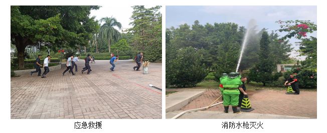 緊急預案啟動后,總指揮常安物業(yè)董事長張武和現(xiàn)場指揮常安物業(yè)安全主管曾德良在現(xiàn)場組織疏散、警戒、滅火、報警、救護、后勤、設備保障、消防車指引等9個應急小組全面參與到火災撲滅的現(xiàn)場救援工作之中,應急工作分工明確,滅火演練有條不紊的進行。