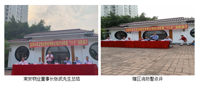 下午16時,此次消防演練活動的項目全部完成,深圳市常安物業(yè)服務有限公司董事長張武先生對此次消防演習進行了總結(jié),強調(diào)要把消防演習當做實戰(zhàn),不能將“演習”當作“演戲”;轄區(qū)消防梁警官在對此次演習活動的點評中表達了注重消防安全工作的重要性和必要性,并對此次活動的組織工作和完成情況作出了高度贊揚。