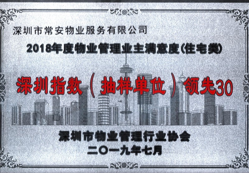 物業(yè)管理業(yè)主滿意度深圳指數(shù)測(cè)評(píng)工作已結(jié)束。以此次深圳指數(shù)測(cè)評(píng)所有樣本為主,結(jié)合深圳綜合實(shí)力 50強(qiáng)滿意度測(cè)評(píng)、優(yōu)秀項(xiàng)目達(dá)標(biāo)驗(yàn)收滿意度測(cè)評(píng)及自主參與滿意度測(cè)評(píng)所涉及的樣本進(jìn)行統(tǒng)計(jì),根據(jù)測(cè)評(píng)結(jié)果,我司榮獲“2018年度物業(yè)管理業(yè)主滿意度(住宅類)深圳指數(shù)(抽樣單位)領(lǐng)先30”的榮譽(yù)稱號(hào)。