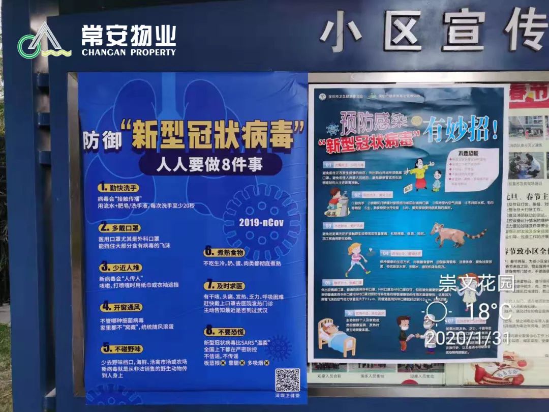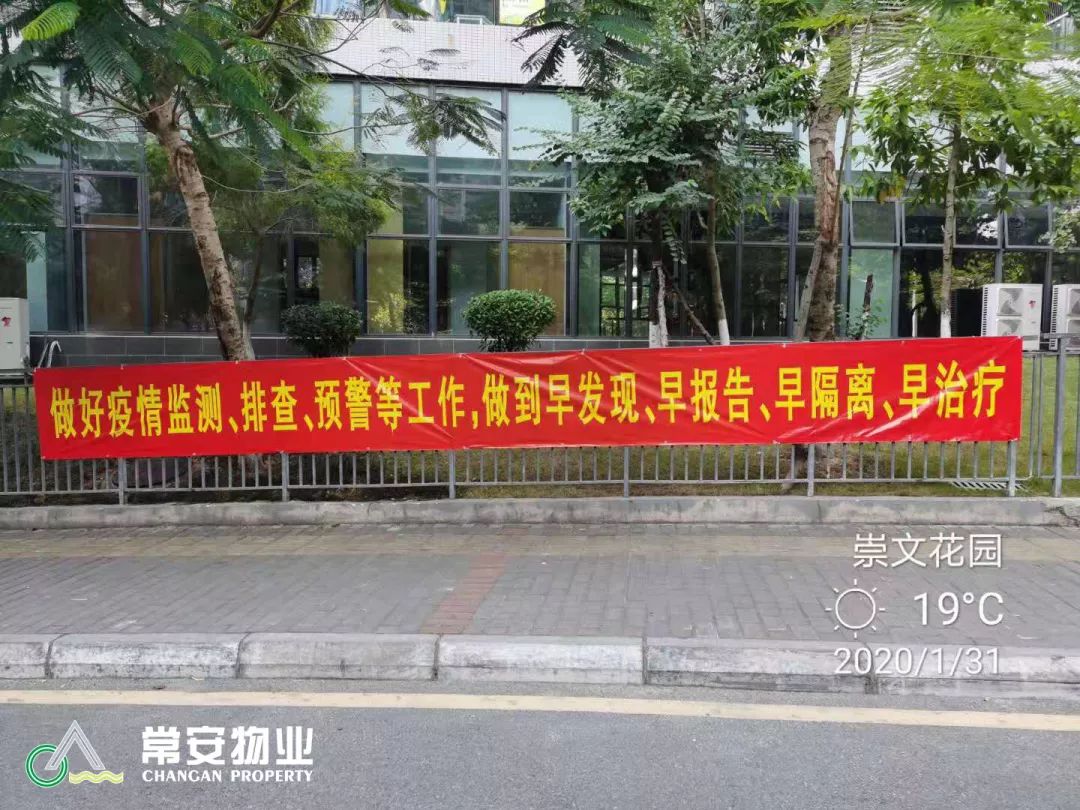 2020年春節(jié)來臨之際,舉國上下緊張地投入到新型冠狀病毒感染的肺炎疫情防控工作之中。為配合政府相關(guān)部門做好本次疫情防范工作,作為防控前線,深圳市常安物業(yè)服務(wù)有限公司積極響應(yīng)政府號召,第一時(shí)間啟動應(yīng)急防控預(yù)案,在張武董事長的領(lǐng)導(dǎo)下,啟動一級響應(yīng)抗擊疫情,堅(jiān)決貫徹落實(shí)政府關(guān)于防治“疫情”工作指示精神,帶領(lǐng)全公司項(xiàng)目主任,迅速采取果斷行動,切實(shí)加強(qiáng)預(yù)防“疫情”工作,確保各項(xiàng)防范措施到位,力保常安物業(yè)服務(wù)管轄范圍及在職員工沒有一個(gè)“疫情”或疑似病人。我司在抓預(yù)防“疫情”的同時(shí),緊抓各項(xiàng)服務(wù)工作不放松,積極有序地推進(jìn)各項(xiàng)工作的開展。為業(yè)主/住戶和員工的健康平安保駕護(hù)航。