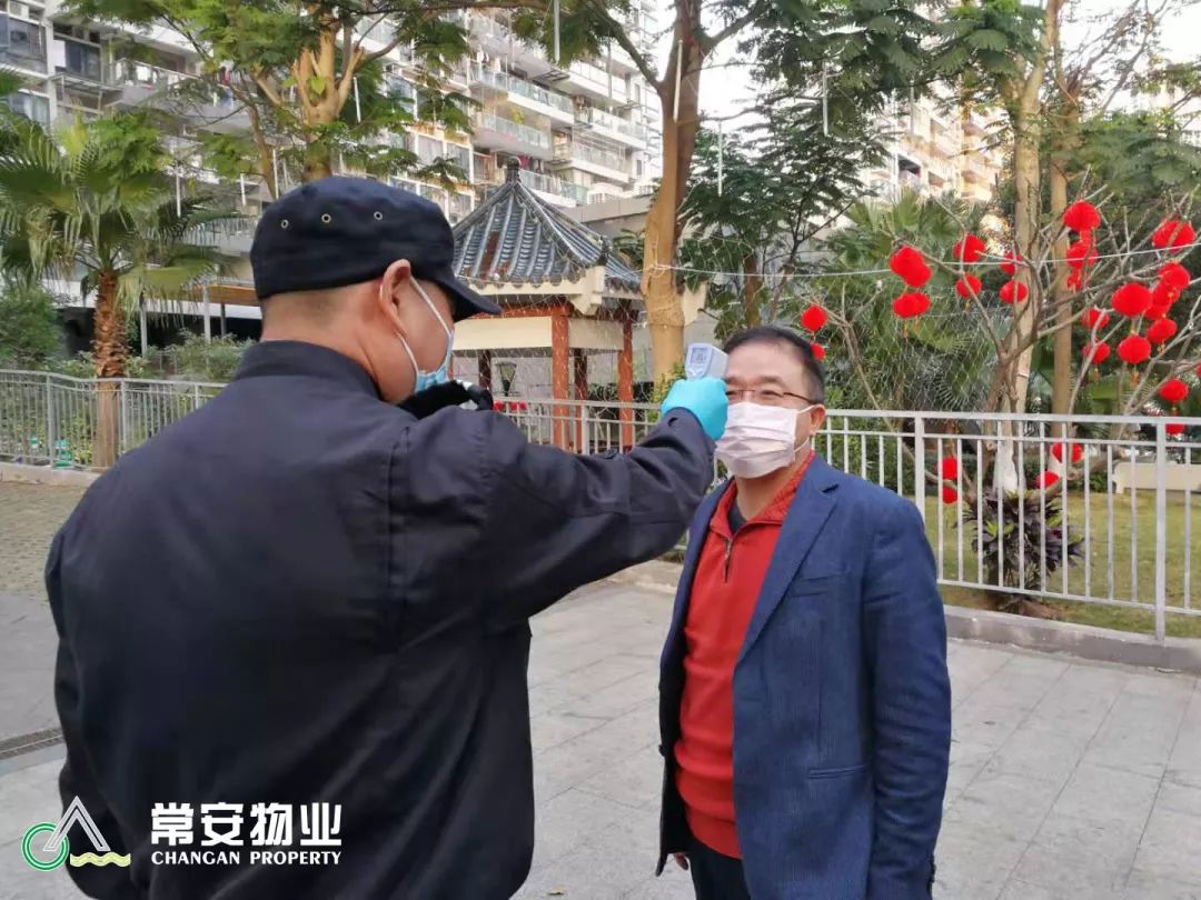 統(tǒng)計(jì)返深人員的信息(包括服務(wù)中心的員工)及外來流動人員情況,做好體溫測量和記錄。截止2020年1月30日,我司共計(jì)采購紅外體溫儀器70余套,對在管項(xiàng)目業(yè)主/住戶、外來人員和值班人員共計(jì)測量體溫五千余次。確保常安物業(yè)管理區(qū)域業(yè)主及公司員工生命安全”