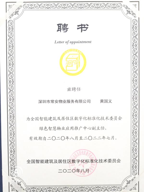 會(huì)上,常安物業(yè)公司副總經(jīng)理黃國(guó)義獲聘為全國(guó)智能建筑及居住區(qū)數(shù)字化標(biāo)準(zhǔn)化技術(shù)委員會(huì)綠色智慧物業(yè)應(yīng)用推廣中心副主任。