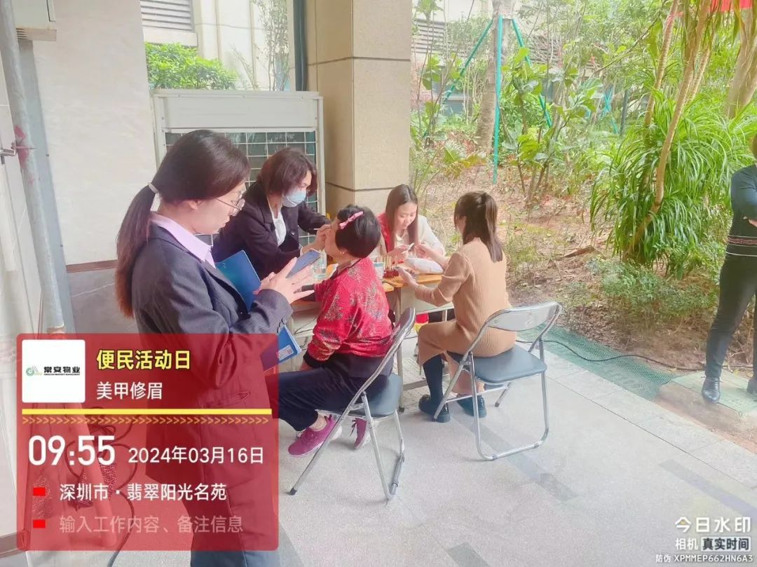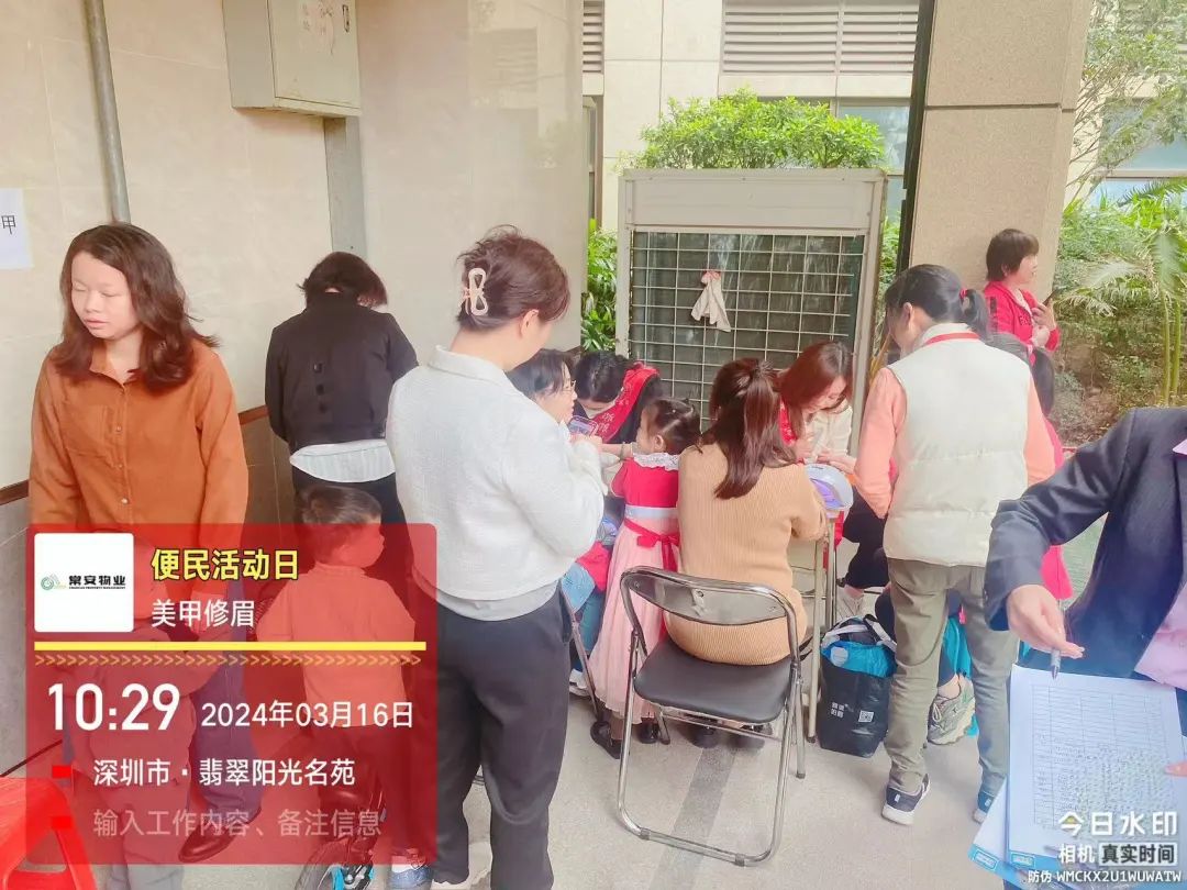 關(guān)注每一個(gè)細(xì)節(jié),為您的生活添彩!為方便本小區(qū)業(yè)主和住戶的居家生活,提升業(yè)主滿意度,提倡助人為樂(lè),創(chuàng)建和諧小區(qū)。常安物業(yè)翡翠陽(yáng)光名苑小區(qū)便民活動(dòng),在2024年3月16日(周六)上午09:30-12:30如期舉行:服務(wù)項(xiàng)目包括送水票、清洗服務(wù)、義剪、義診、美甲、修眉,獲得業(yè)主一致好評(píng)。